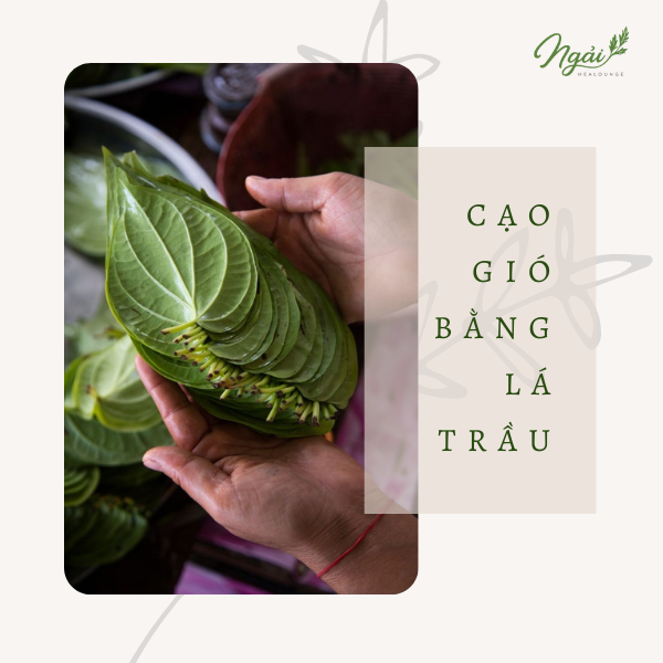 Rửa sạch và giã nhỏ lá trầu không. Bọc lá trầu trong mảnh vải rồi xoa lên vùng cần cạo gió. Lá trầu không có vị cay nồng, mùi thơm hắc, tính ấm, có tác dụng trừ phong, tiêu viêm, sát trùng, kháng khuẩn.