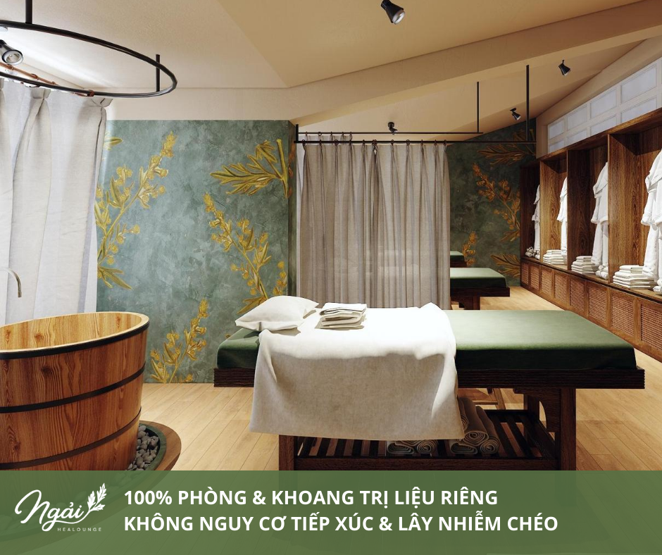 Nằm trên giường xông của Ngải êm ái, nhắm mắt tận hưởng không gian ngập tràn hương cỏ hoa với tiếng nhạc du dương, cảm giác thư thái trong khi được massage trị liệu cổ vai gáy chắc chắn bạn sẽ chẳng tìm thấy ở bất kỳ Spa nào khác.
