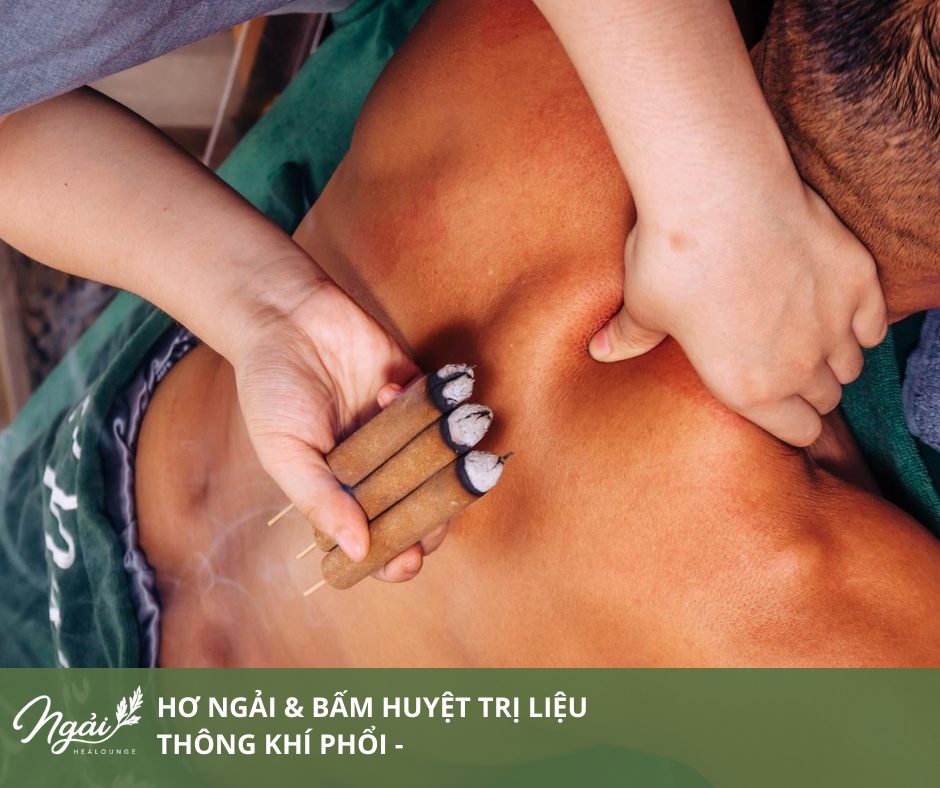 Massage Trị Liệu Đau Vai Gáy Lưng kết hợp 7 liệu pháp hơ ngải, massage bấm huyệt, vật lý trị liệu, nắn chỉnh cột sống, bài độc giải cảm và thưởng trà detox, bánh hạt dinh dưỡng