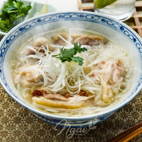 Phở Gà Da Giòn của NGẢI là sự kết hợp tinh tế từ bánh phở mềm, đến thịt gà tươi, da vàng giòn, cùng với các gia vị hành lá, chanh ớt. Đặc biệt, nước dùng gà phải có vị thanh ngọt dịu từ xương gà được ninh kĩ, điểm thêm vài con sá sùng khô, đúng công thức của Phở Hà Nội Cổ Truyền. Cộng hưởng cùng với cái óng ánh sánh vàng tiết ra từ mỡ gà, béo mà không ngấy làm cho hương vị cũng như màu sắc nước dùng trở nên hấp dẫn cực kì.